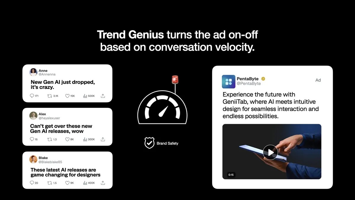 X的廣告功能「Trend Genius」,可以偵測用戶的討論話題,自動開關廣告貼文。 圖/ X Taiwan