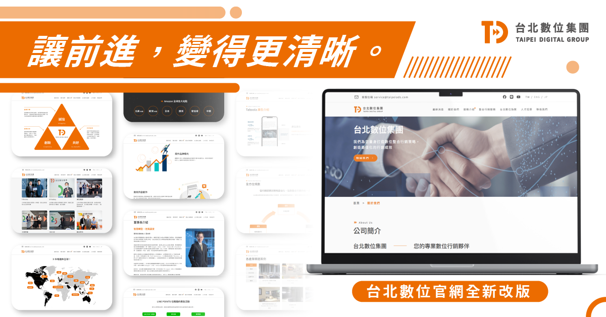 本次改版整合了 Google、Meta、LINE、Yahoo、Taboola、X 等廣告服務內容,也重新呈現集團故事與重要里程碑,讓網站回到它最重要的角色——承載價值、傳遞專業。